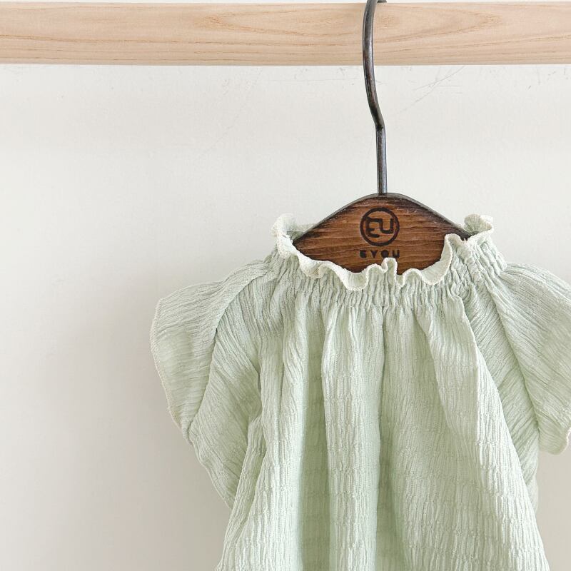 ネックラインと裾のシャーリングデザイン がポイントで、