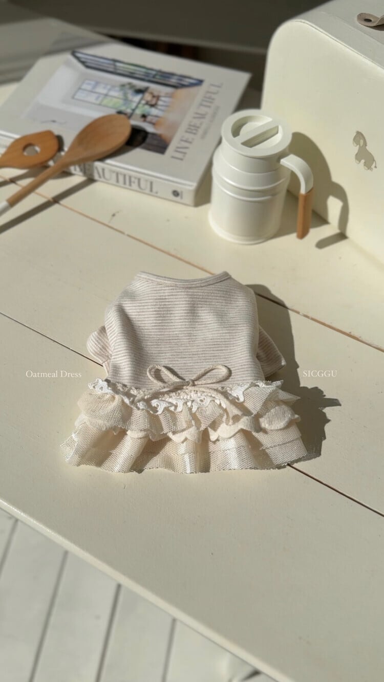ふんわり柔らかい肌ざわりと、どんなアイテムにも馴染むオートミールカラーが魅力のシンプルドレス。