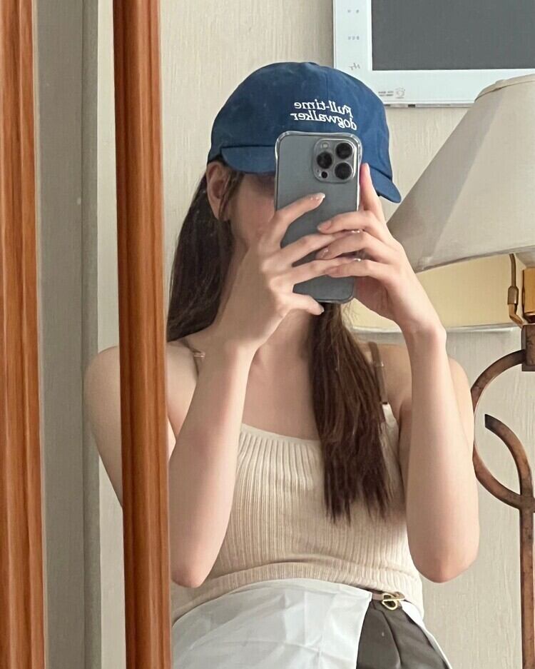 お散歩スタイルにユーモアを添える、「Full-time dogwalker」の刺繍が目を引くボールキャップ。