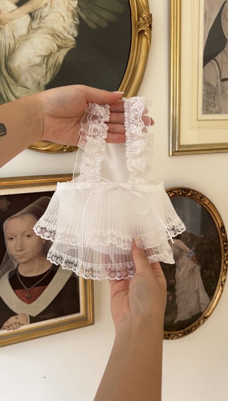 繊細なレースと軽やかなチュールを贅沢に重ねた、まるで天使のような一着。