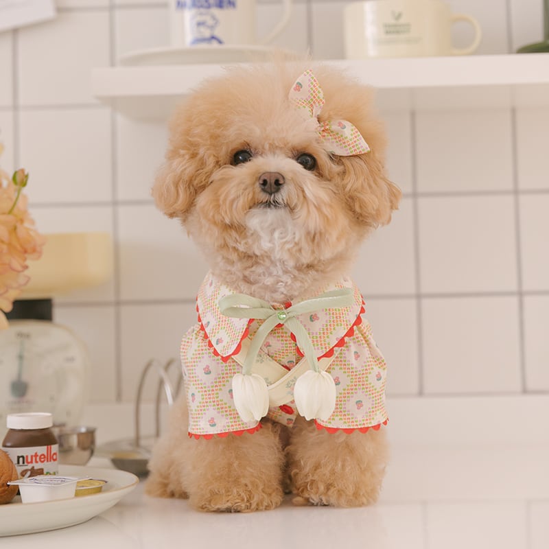 ふっくらと立体的なチューリップは軽やかで、ブラウスやワンピース、ハーネスの上にさりげなく添えるだけで華やかな雰囲気に。
