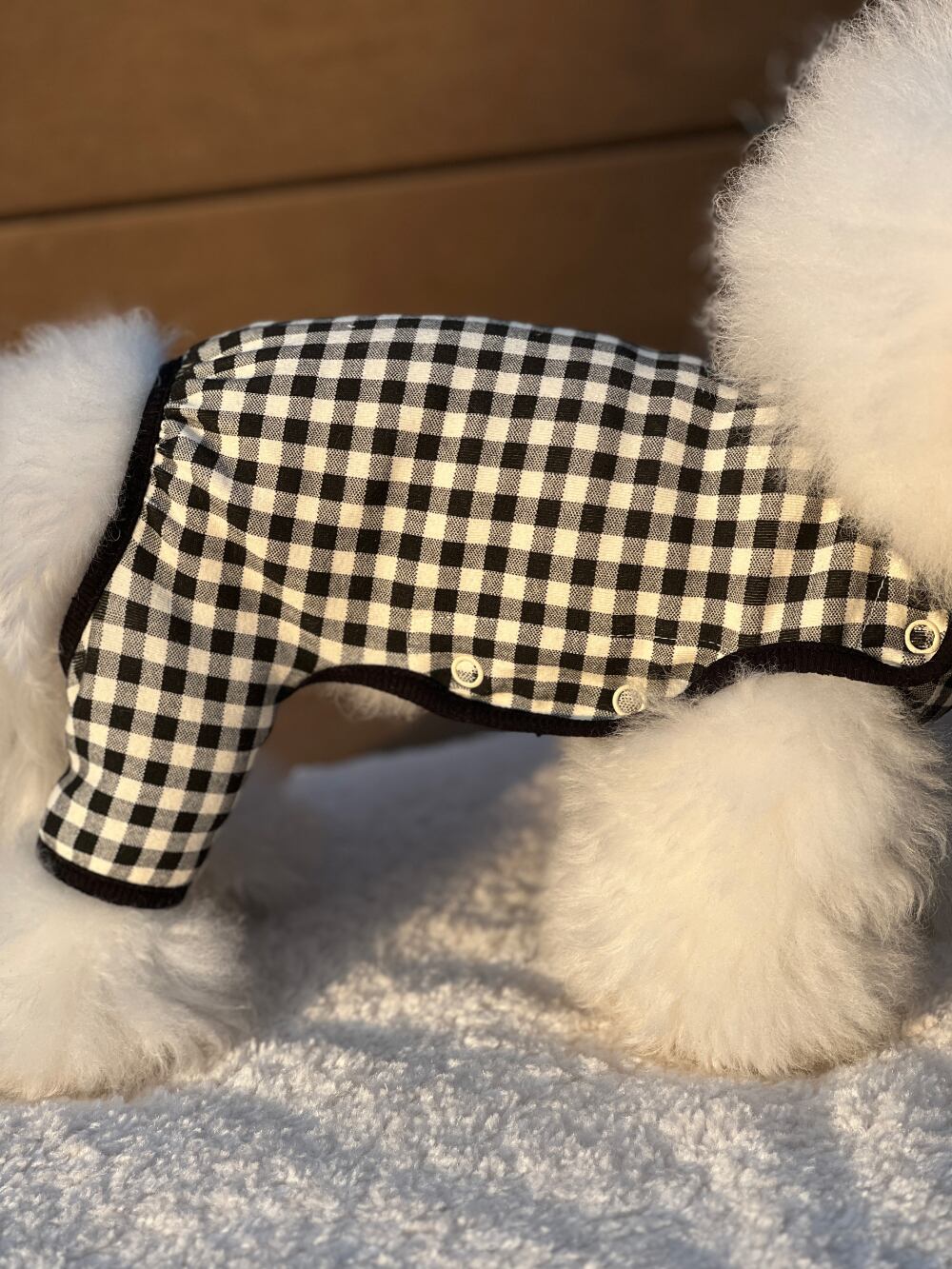 首元から足元まですべてフルオープンになるデザインで、わんこの負担を最小限にしながら、やさしく・快適に着せられる1着です。