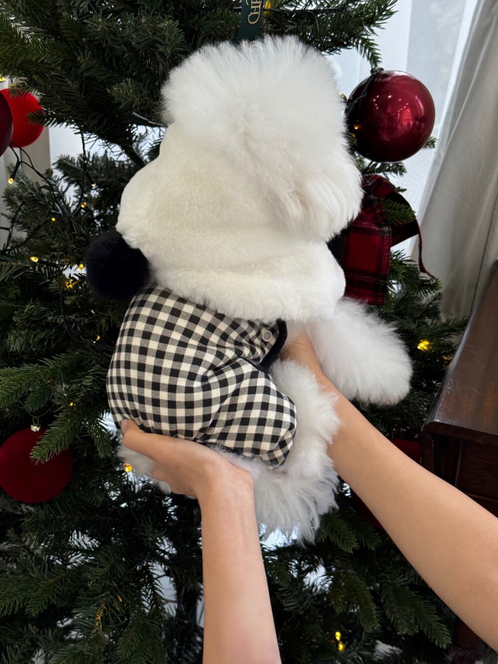 クラシックなチェック柄が冬コーデにもよく合い、ナチュラルで優しい雰囲気のスタイルにぴったりです。