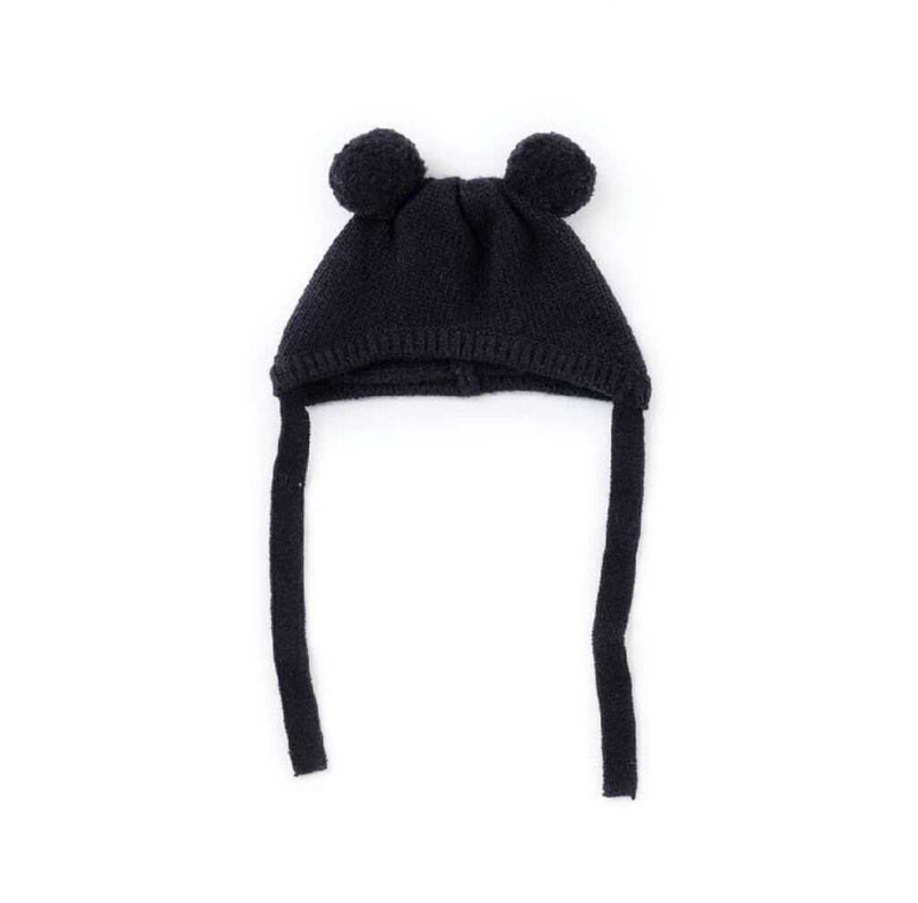 まるい耳がついたデザインが愛らしい、Pebblesのウールビーニー。