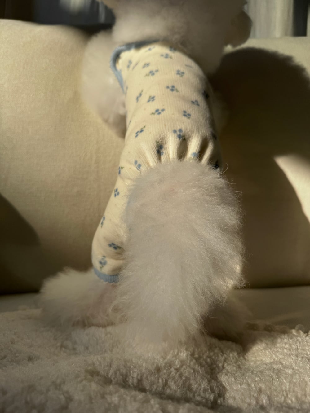 足を持ち上げなくても着せられるので、関節に負担をかけにくく、敏感な子やシニアの子にもおすすめのアイテムです。