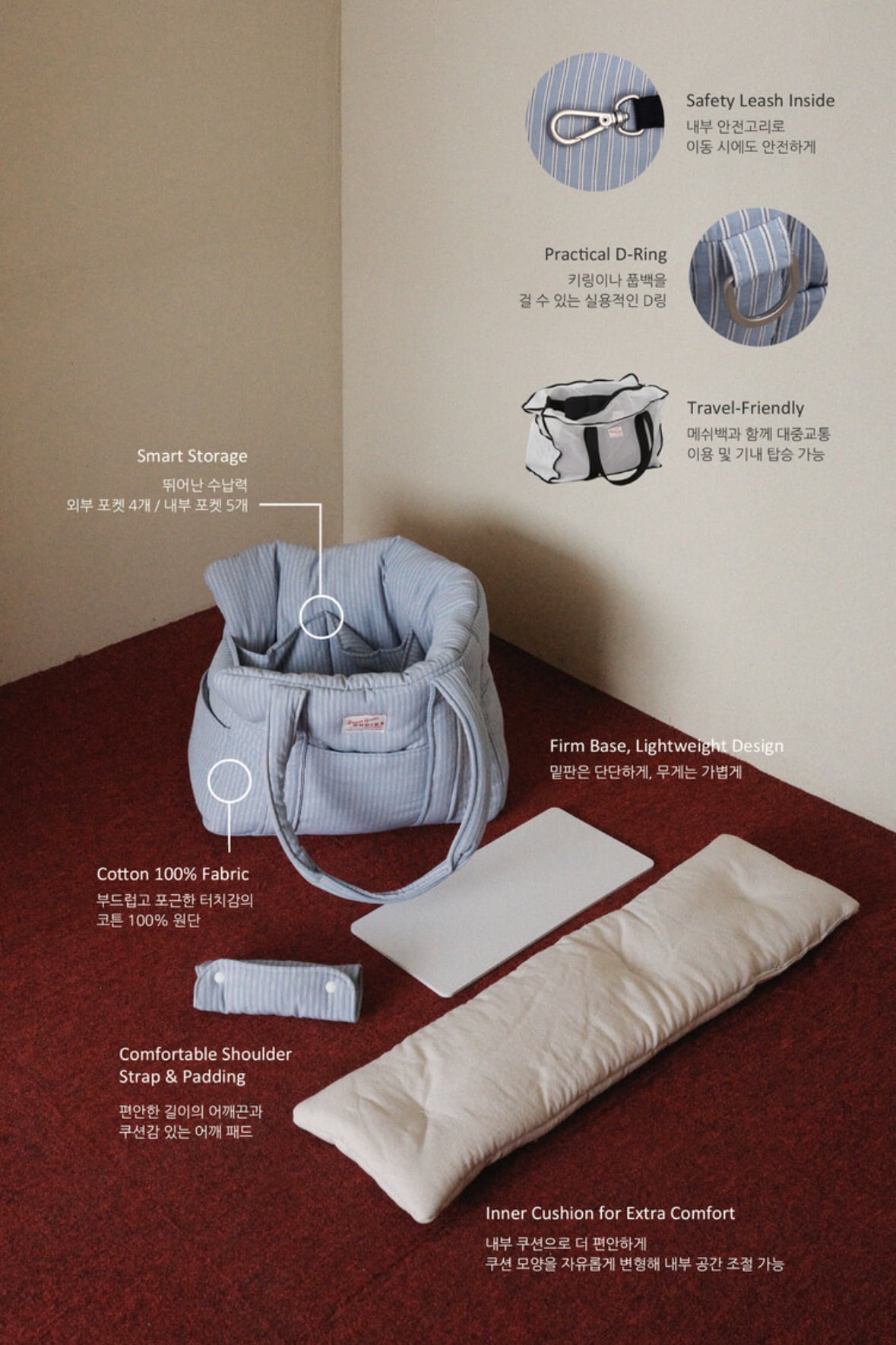 わんちゃんと自然に過ごせるよう設計されたキャリーバッグです。