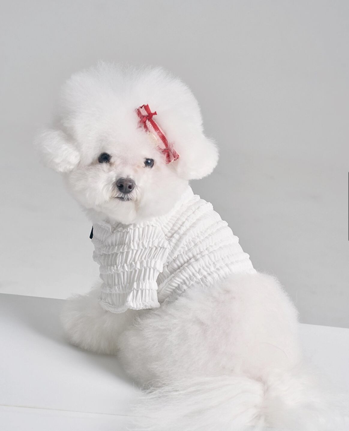 立体感のあるシャーリング生地が美しい、