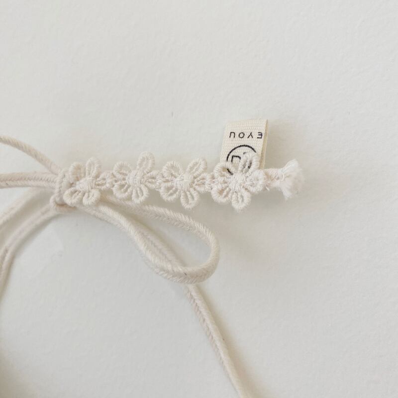 サイズを調整する紐の後ろにお花のレースでポイントを与えて、